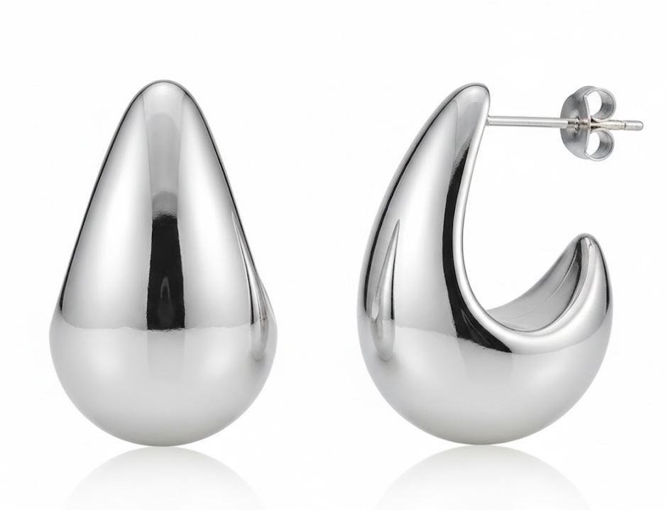 Crafted in polished silver for an understated yet sophisticated appeal. Their graceful teardrop silhouette transitions seamlessly from daytime elegance to evening glamour, making them an essential accessory for any occasion. The classic design ensures these pieces remain perpetually relevant, complementing both casual and formal ensembles with effortless refinement.