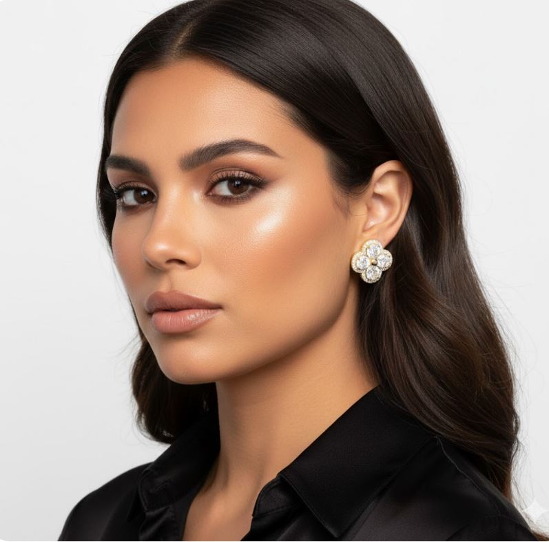 To preserve the brilliance of your earrings, store them in a soft pouch or jewelry box away from moisture and direct sunlight. Clean gently with a soft, lint-free cloth to maintain the sparkle of the rhinestones and protect the gold metal from tarnishing. Avoid exposure to perfumes, lotions, and harsh chemicals, which can dull both the metal and stone settings. Remove before swimming or showering to prevent water damage. With proper care, these elegant pieces will retain their lustrous beauty for years to come.